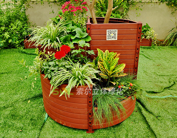 行道樹綠化,考慮到要形成立體景觀及遮擋容器,植物要求以開花植物及藤本植物為主,形成有層次的有色彩漸變的立體效果。采用模塊化花箱時,植物還可選擇小灌木。